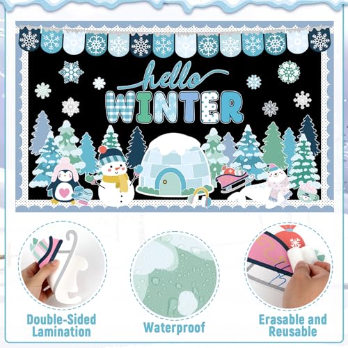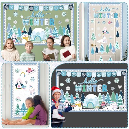 Specification: Justforjoyful Winter Bulletin Board Decorations Hello Winter Cutouts Snowflake Snowman Bulletin Board Set Penguin Xmas Tree Classroom Decor for Holiday School Chalkboard Wall Christmas Party Supply