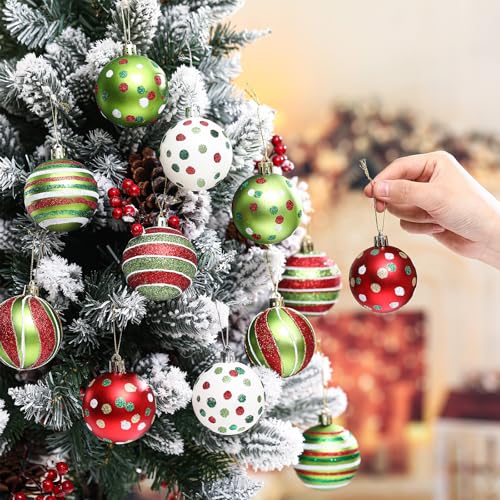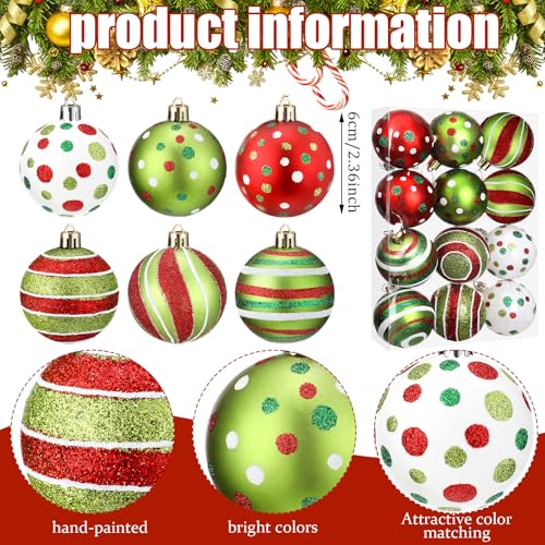 Specification: Liliful 12 Pcs 2.4 Inch Christmas Ball Ornaments Glittering Plastic Hanging Decorations Elf Balls Swirl Candy Cane Peppermint Red and Green Christmas Tree Pendants for Xmas Tree Decoration
