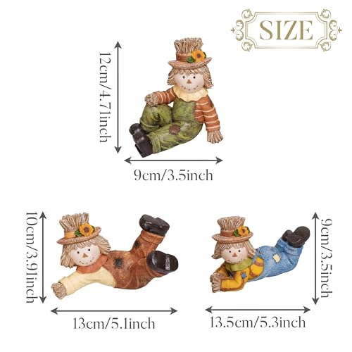 Valery Madelyn Scarecrow Thanksgiving Fall Decor for Home, 3 pcs Resin Fall Table Kitchen Decor Collectible Figurines Indoor, Funny Garden Statue Autumn Harvest Gift for Yard Party Porch 4.7inch